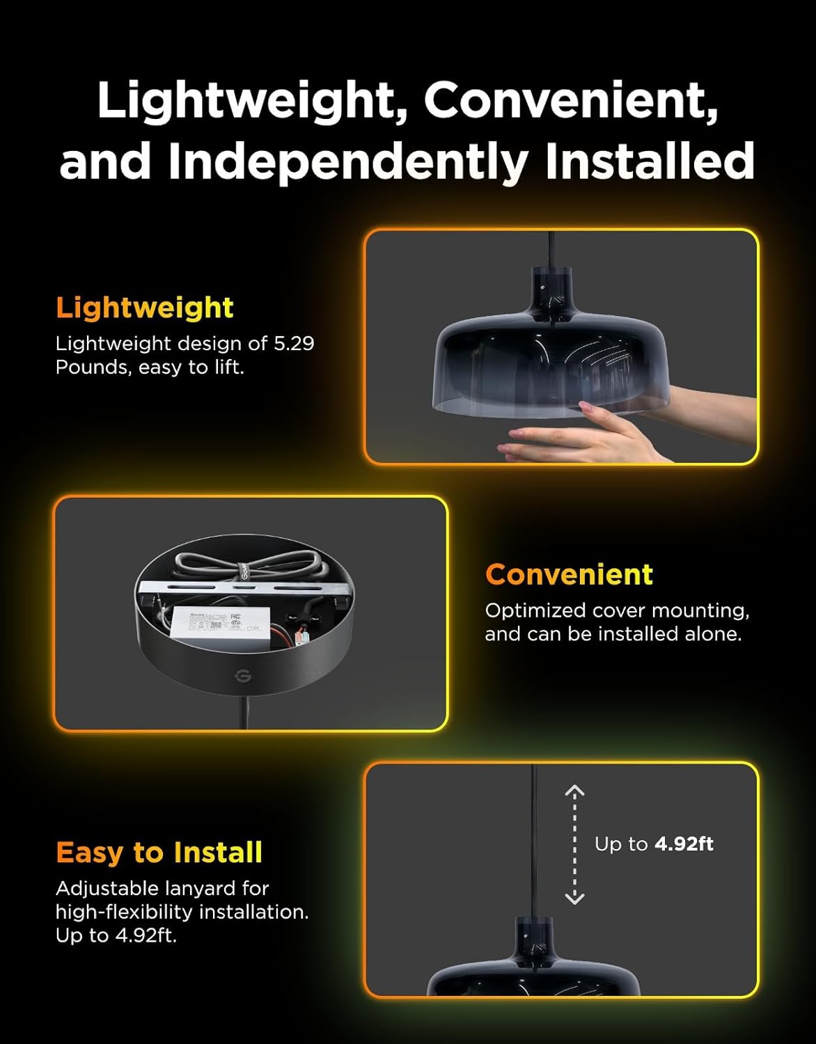 - Smart & Convenient: Govee smart pendant Light supports Google, Alexa, and Matter voice control, allowing you to adjust lighting via a 2.4 GHz Wi-Fi connection. The timer and schedule features automatically match your routine for total convenience.