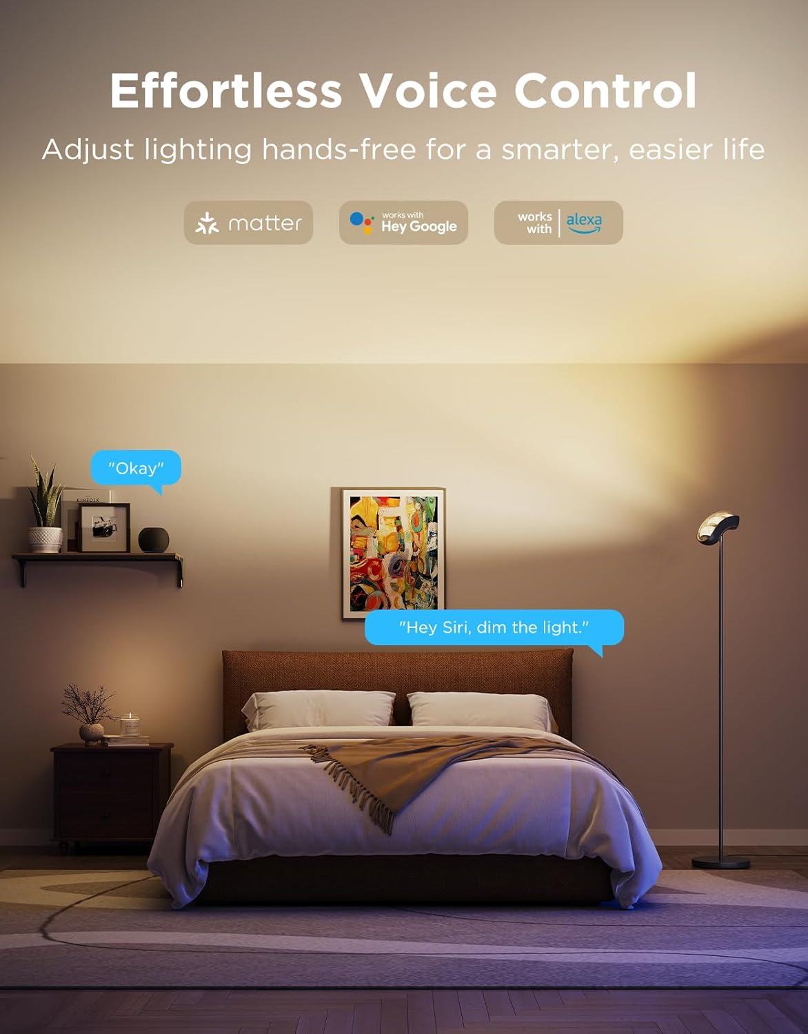 - Matter-Supported Smart Lighting: As a certified Matter-compatible LED floor lamp, control colors/brightness via HomeKit(IPv6)/Alexa/Google. This standing lamp enables whole-home automation with future-ready connectivity.