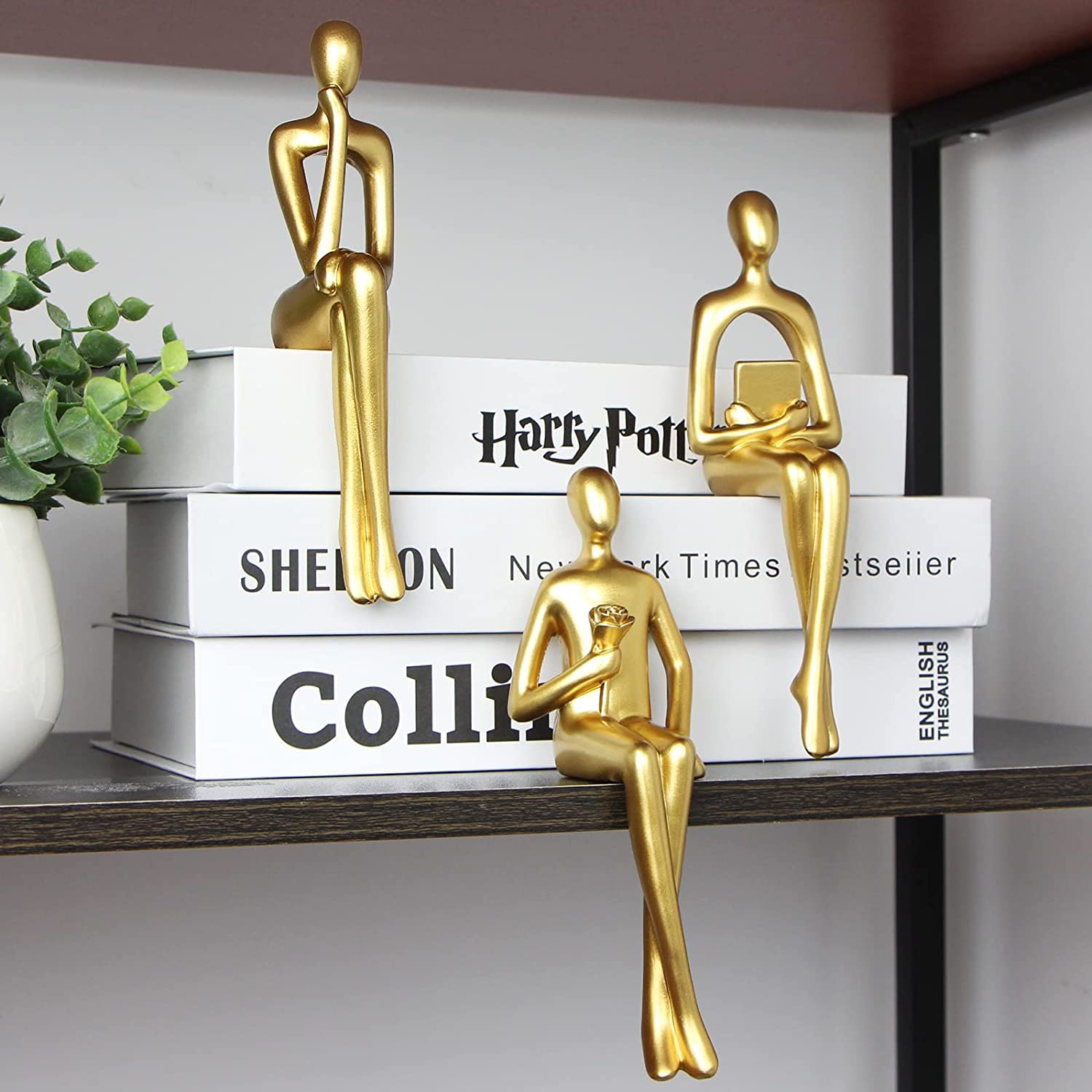 - Collectible Figurines: The Sitting thinker statue set has three different states: thinking, reading, holding flowers. Aims to express the same in life, keep thinking and learning, and have a good heart. This abstract sculpture is a very meaningful home decoration and collectible.