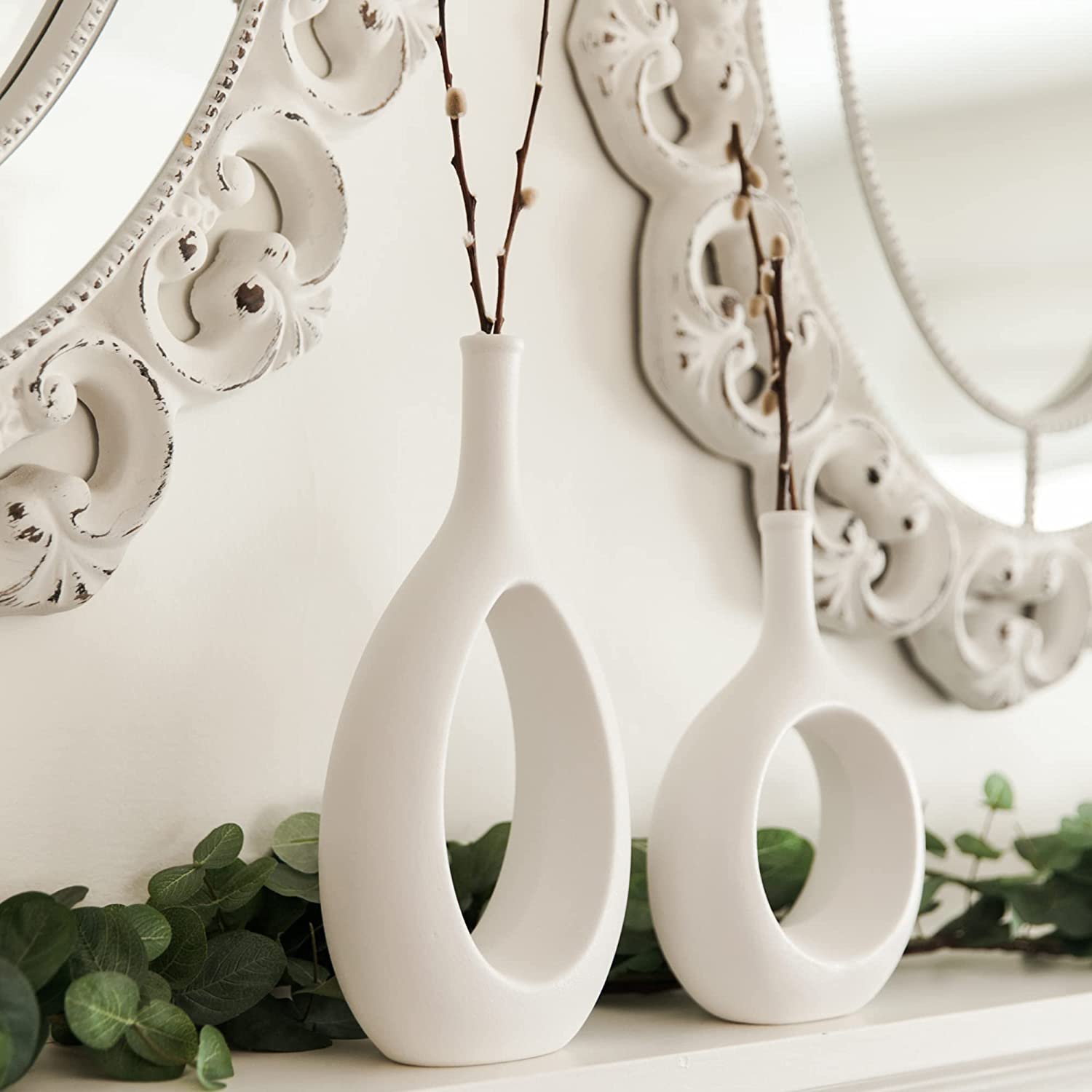 - HOLLOW DESIGN: Made of quality white ceramic and the finish of the vase is awesome. Traditional shape but it is hollowed out in the middle, the vase will add a modern vibe to your home decor.